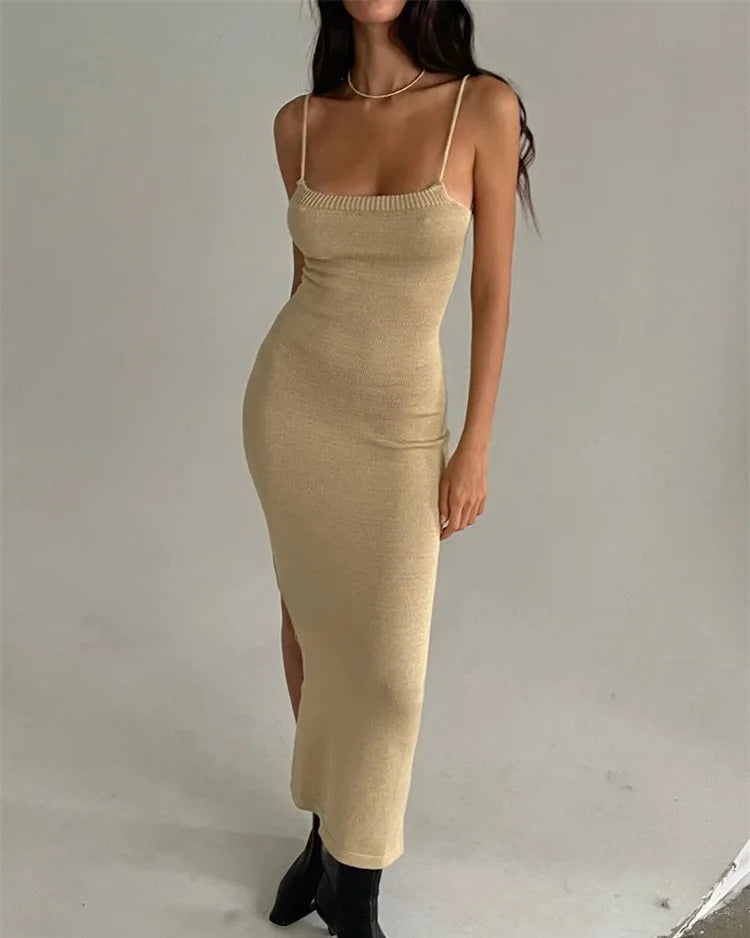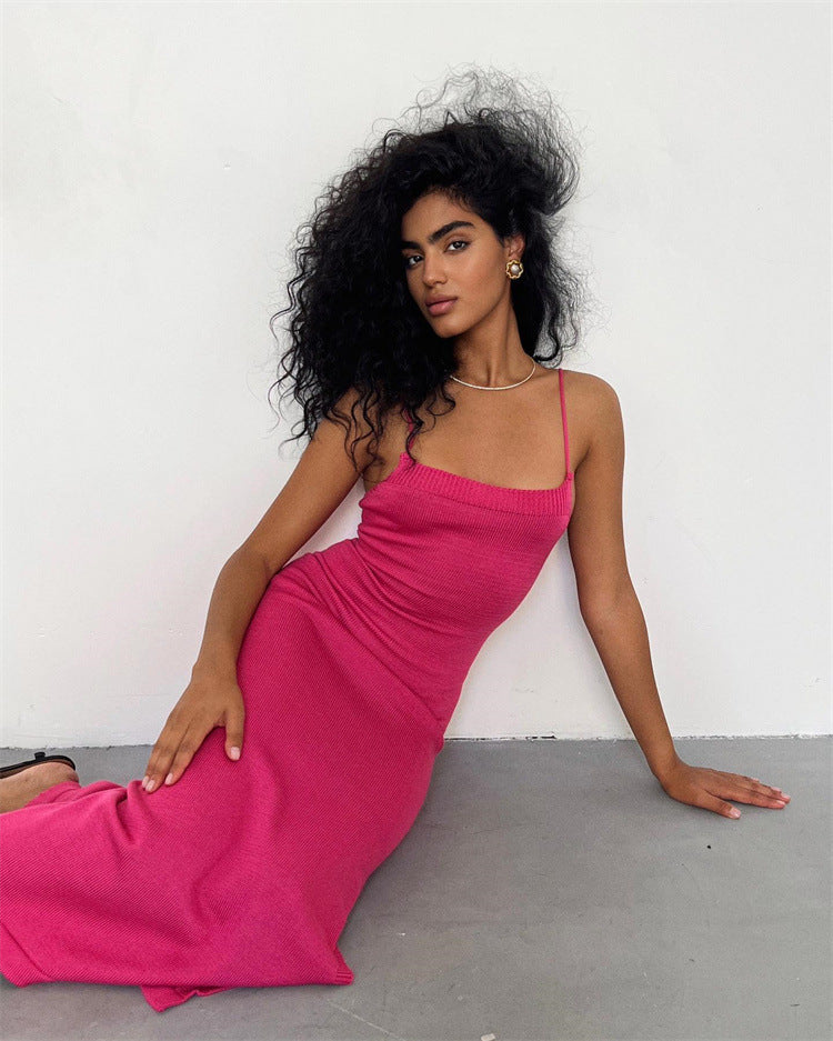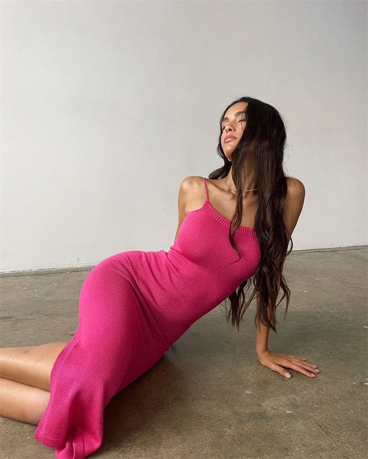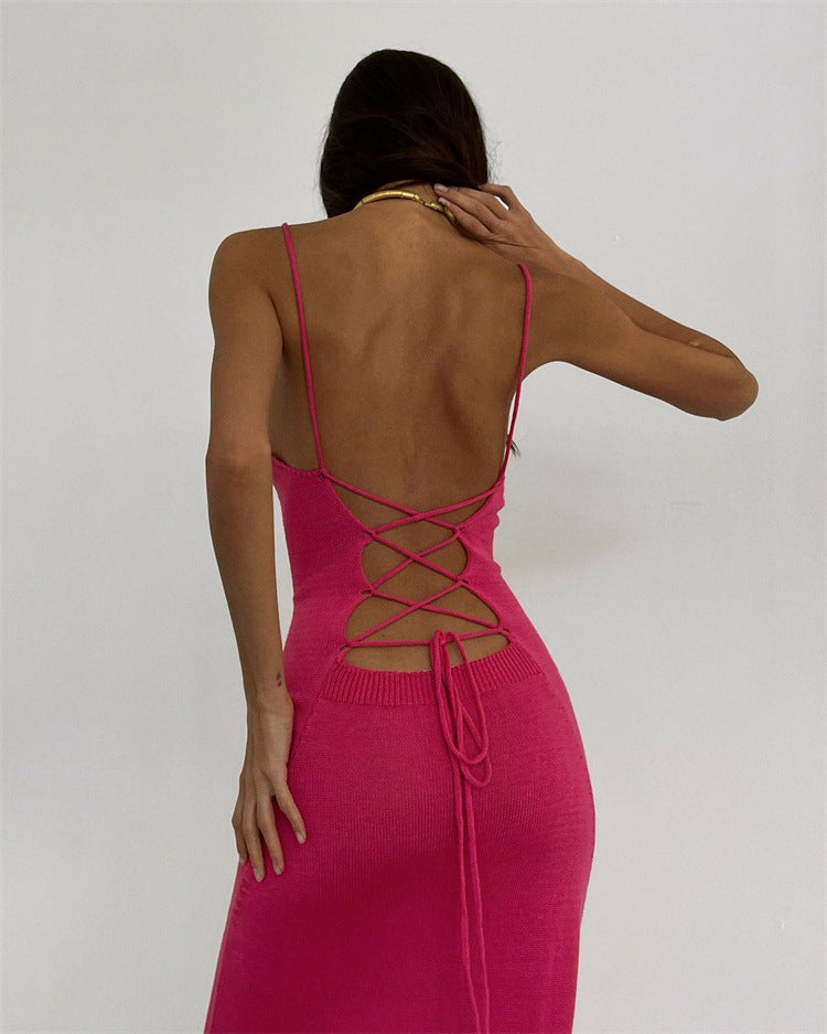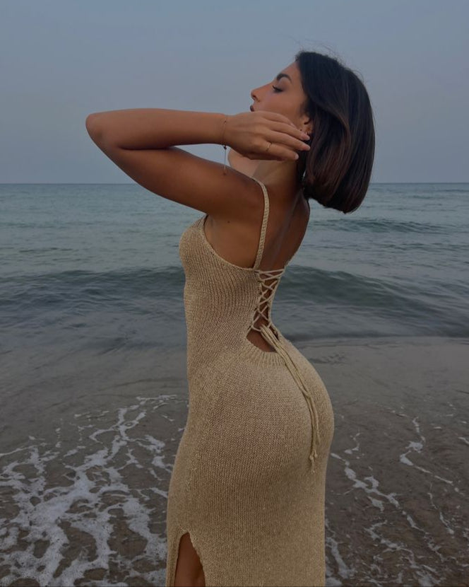 The BARE CODE Dress features a curve-hugging knit silhouette with delicate shoulder straps and a dramatic open back finished with adjustable lace-up ties. Designed to sculpt your figure and command attention from every angle, this is your go-to for a night out or a statement daytime look.
