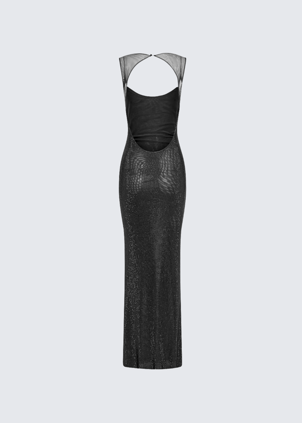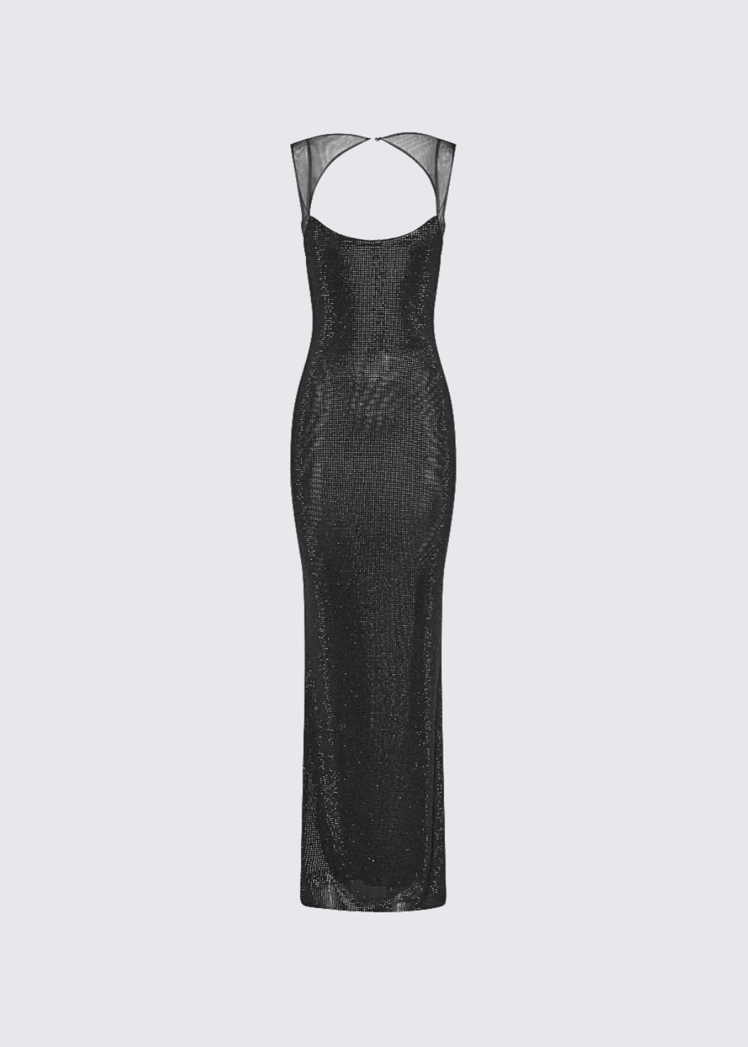 Step into the spotlight with the ELARA Diamante Maxi Dress, a breathtaking fusion of elegance and modern allure. Designed to shimmer under the night sky, this dress features a scoop neckline and delicate mesh straps that gracefully extend into sheer back panels.