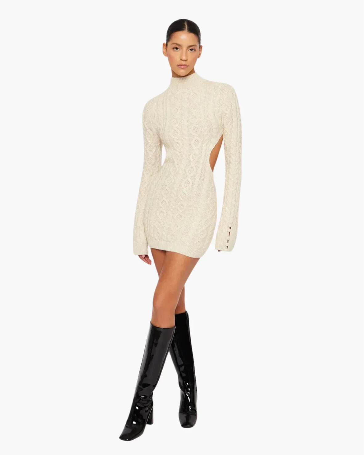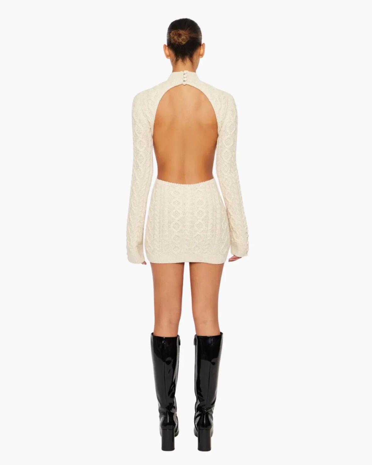 HOLD ME CLOSER Knitted Long Sleeve Backless Mini Dress