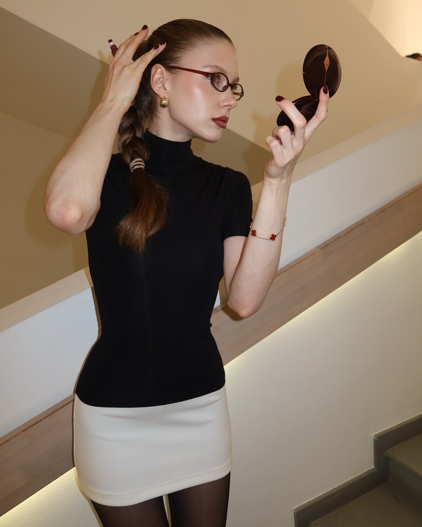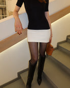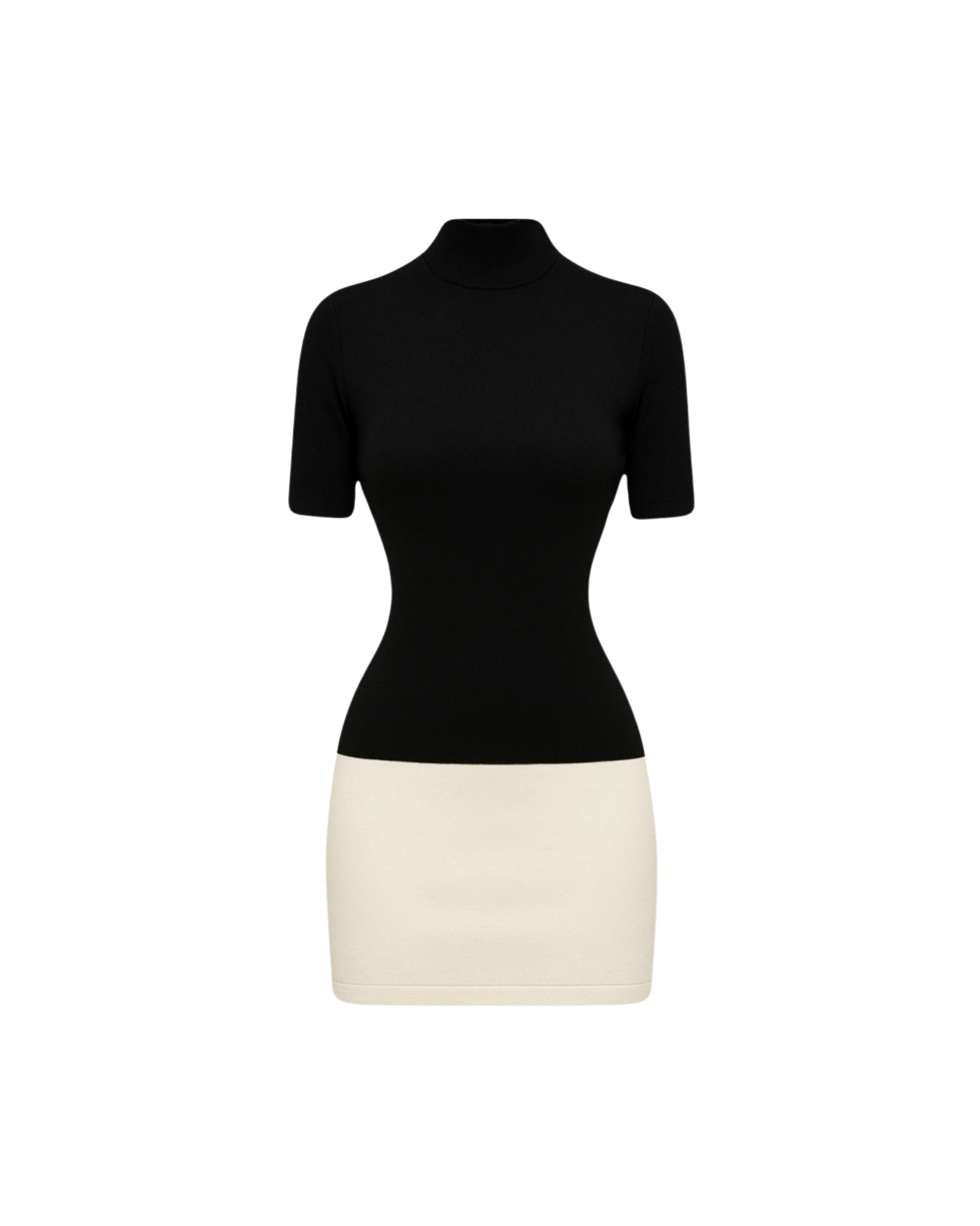 In classic black and white, this mini dress features a high turtle neck that effortlessly embodies style and ensures you stand out at any event. It's not just an outfit, it's a statement.
