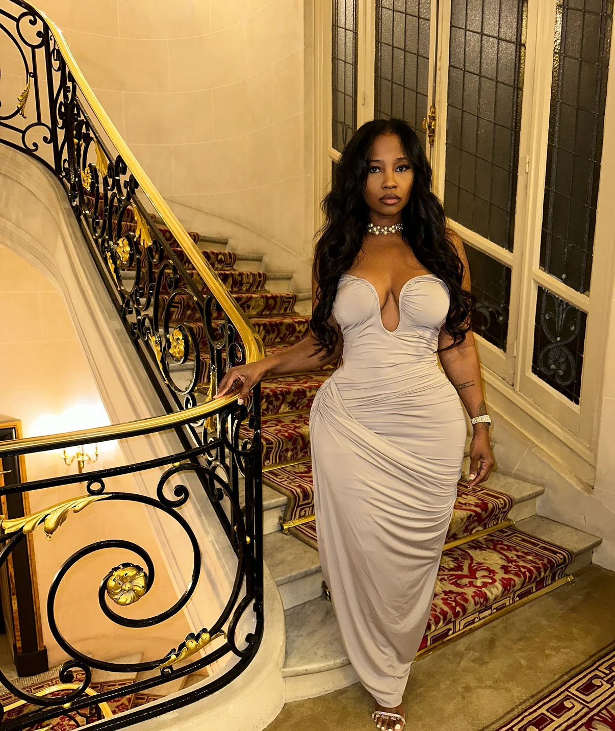 The SERAPHINA Back Ruching Bust Cutout Maxi Dress is your perfect choice for an unforgettable look. Whether you’re attending a glamorous evening event or a special celebration, this dress is designed to highlight your figure with elegant details and luxurious comfort.
