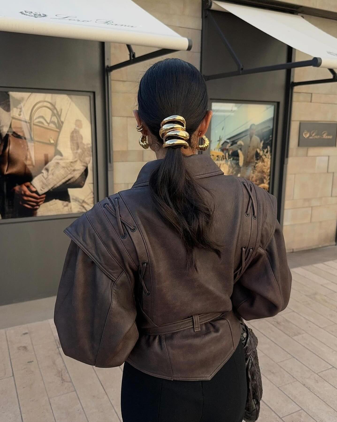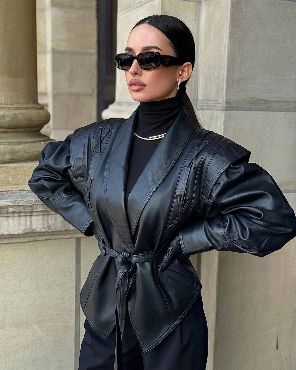 Wear it layered over sheer knits, slim tailoring, or nothing underneath. It’s the kind of jacket that carries a whole outfit.