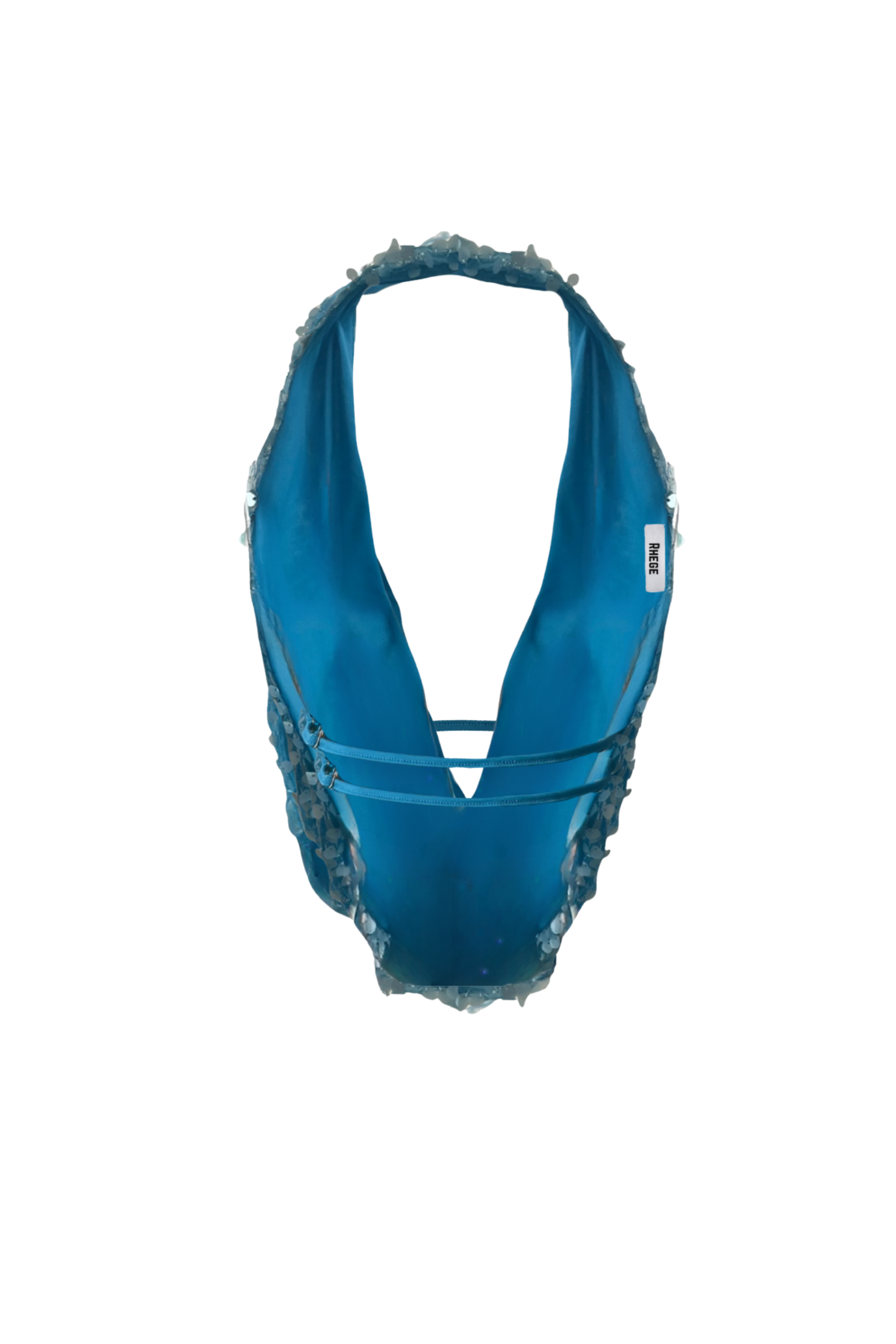 Effortlessly sultry. This top features a plunging cowl neckline, shimmering sequin fabric, and an open back that’s made to turn heads. With wide neck straps for support and a delicate adjustable tie at the back, it’s designed to move with you from golden hour to after dark. Pair it with a mini skirt, vintage denim, or layered jewelry for a full statement moment.