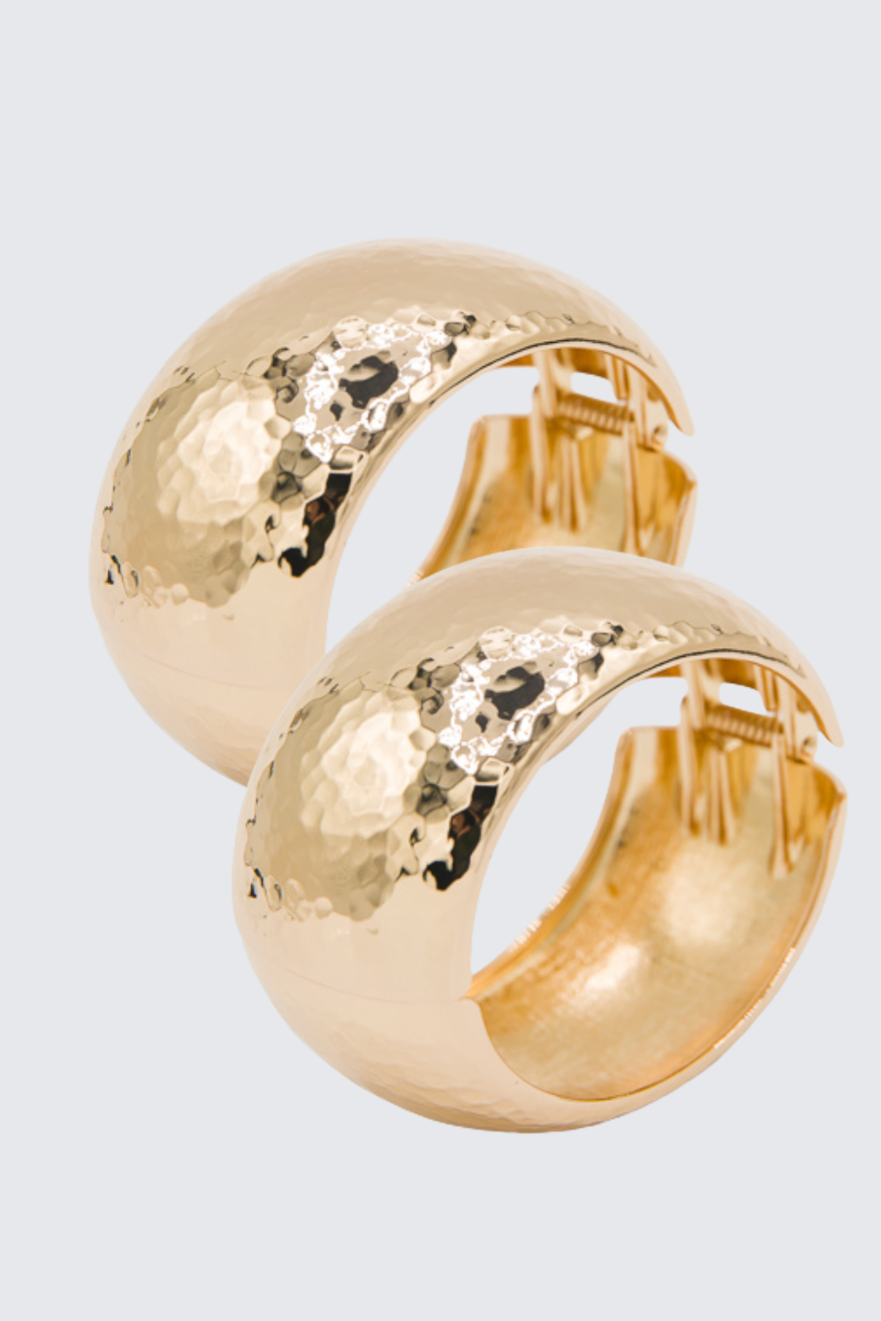 The VERRA cuff set includes two sculpted bracelets in polished metal with a subtle hammered finish.