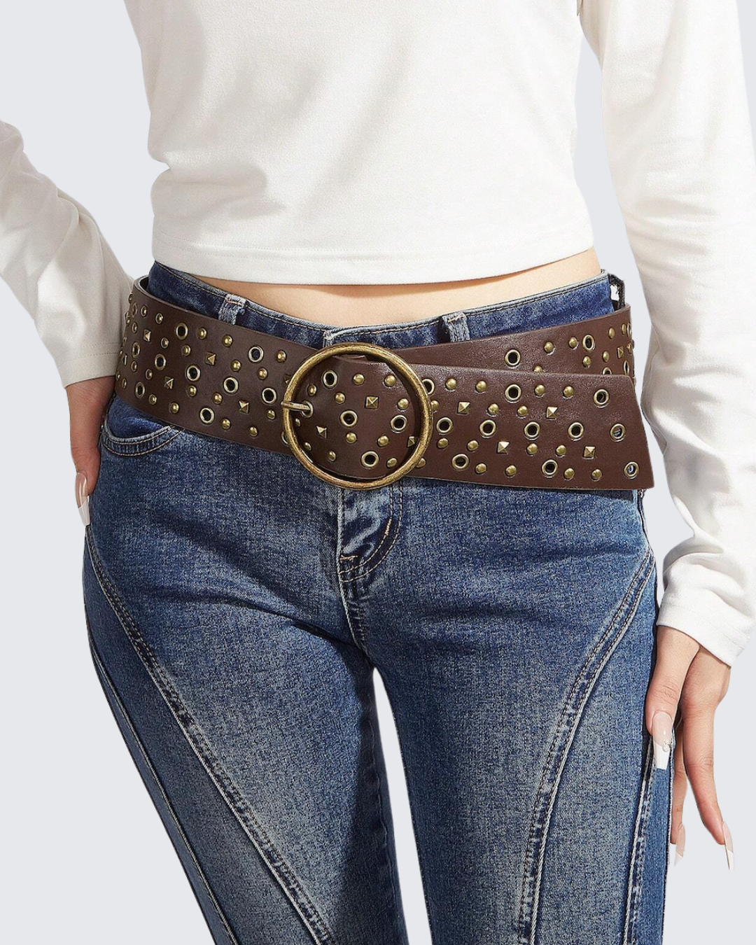 The Jaide Low Waist Belt is the perfect blend of edgy and chic, designed to elevate any outfit with its silver and gold-tone stud detailing. Whether paired with jeans, skirts, or dresses, this belt adds a stylish finishing touch to your look.
