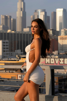 The Chiara Dress in white is crafted from a double-layered 90% modal, 10% cashmere knit that feels like a second skin.