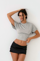 An elevated essential. The Kimono Crop Tee is cut from soft stretch cotton with wide, sculptural sleeves and a fitted cropped waist for that effortless, model-off-duty shape. Minimal yet refined, wear it with low-rise pants or a micro mini for the full Rhege look.