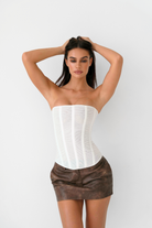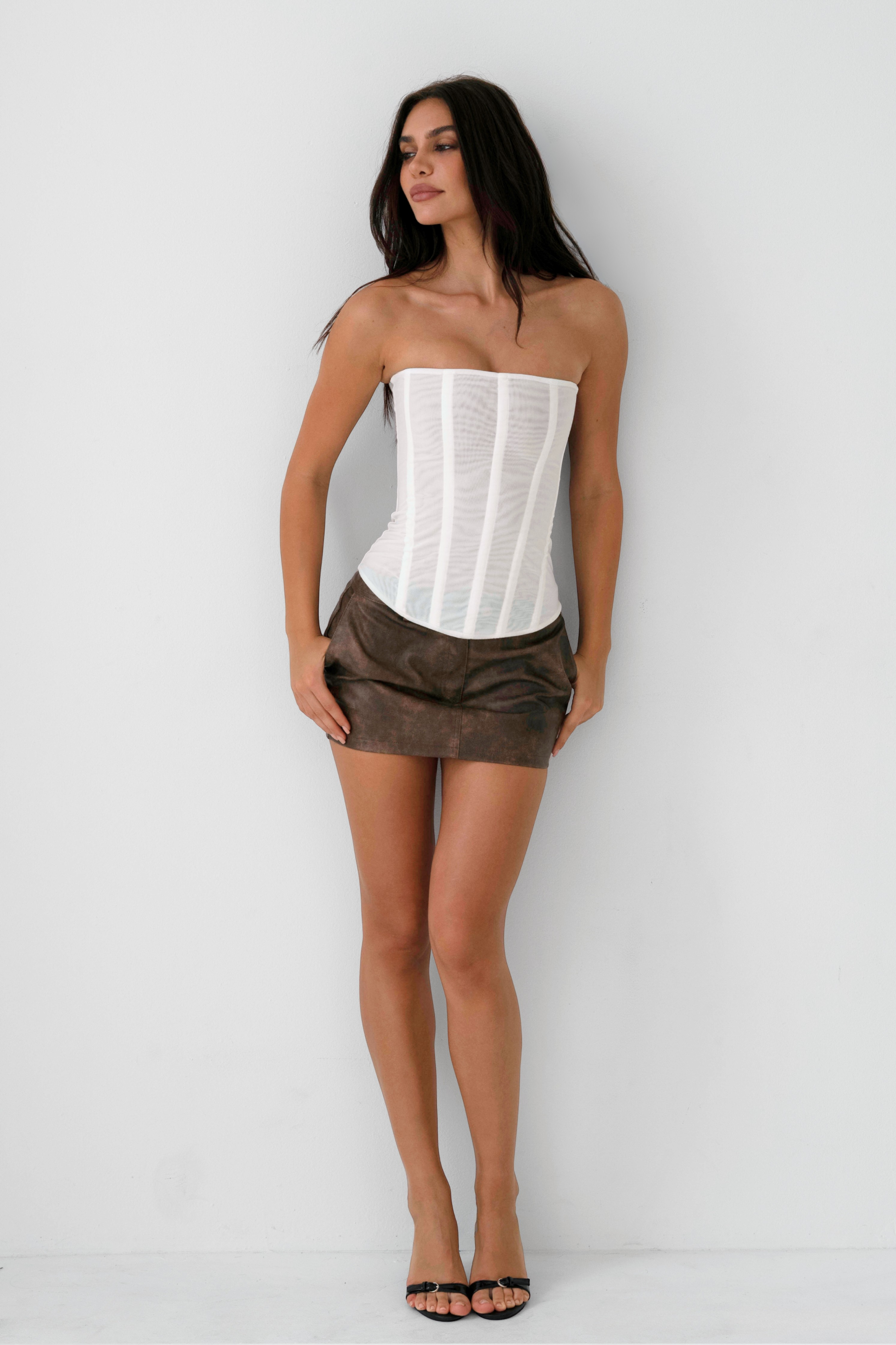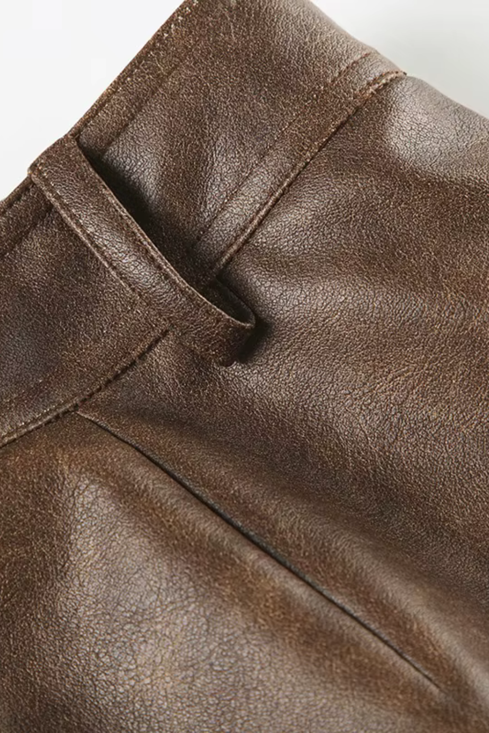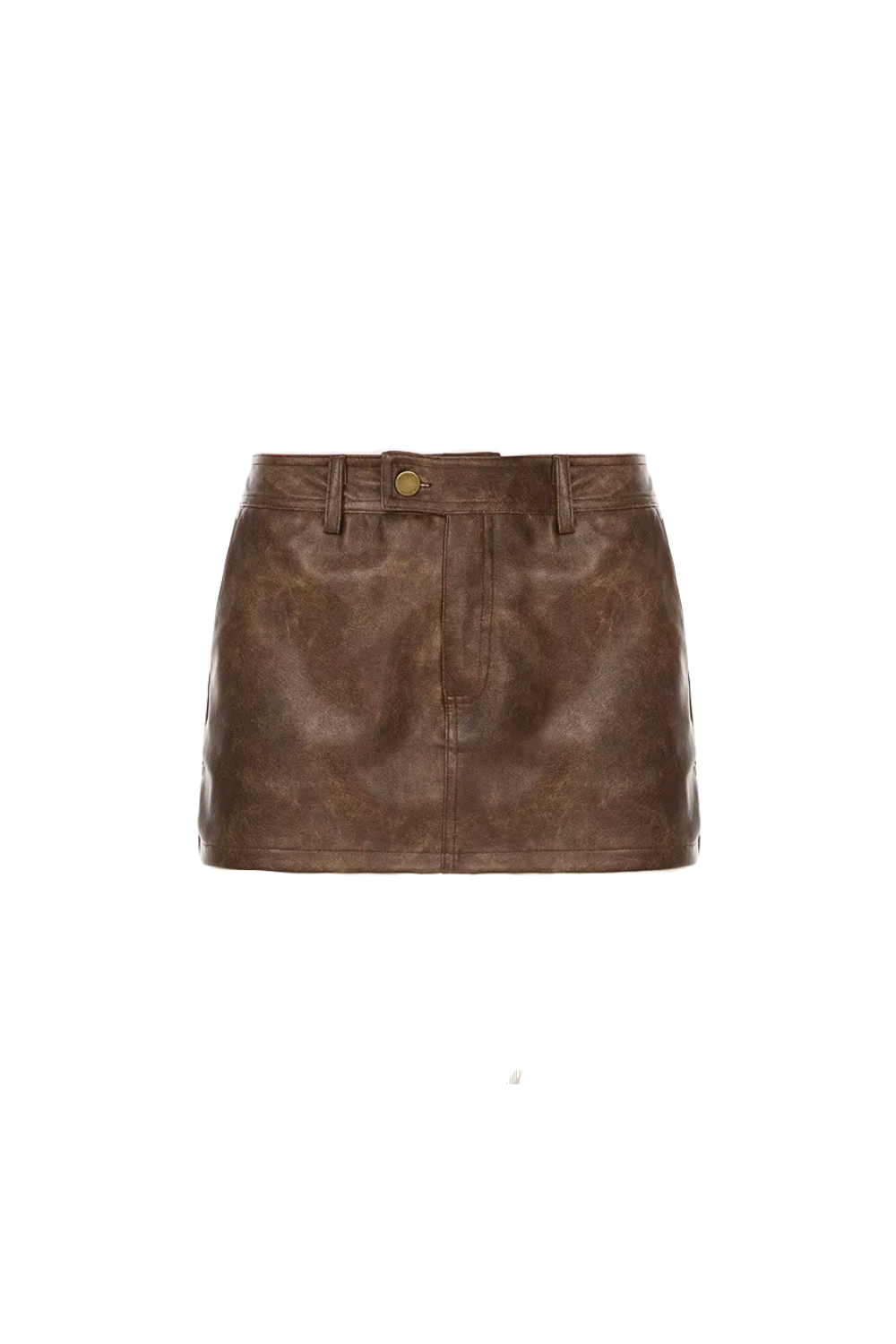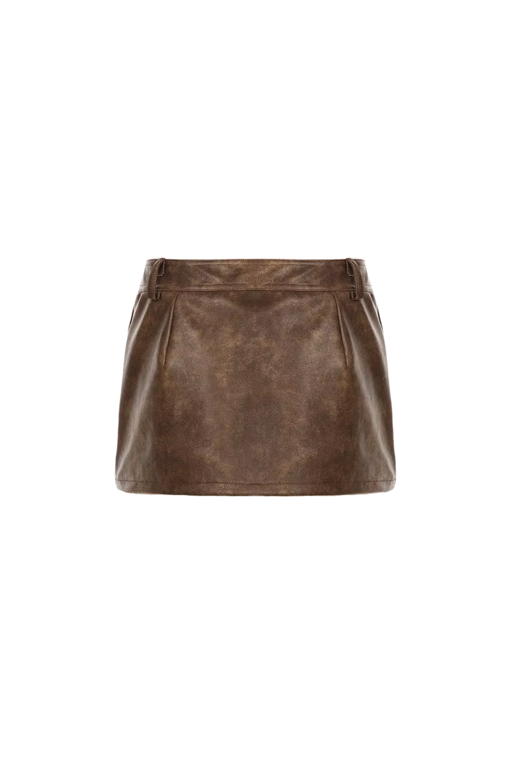 The Sana Leather Mini Skirt is cut from soft vegan leather with a clean, structured shape. It sits low on the waist and moves easily with built-in shorts underneath.