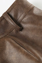 The design features belt loops, a smooth concealed zipper, and a single button at the waist. The texture has a light vintage finish - simple, sleek, and wearable with anything.