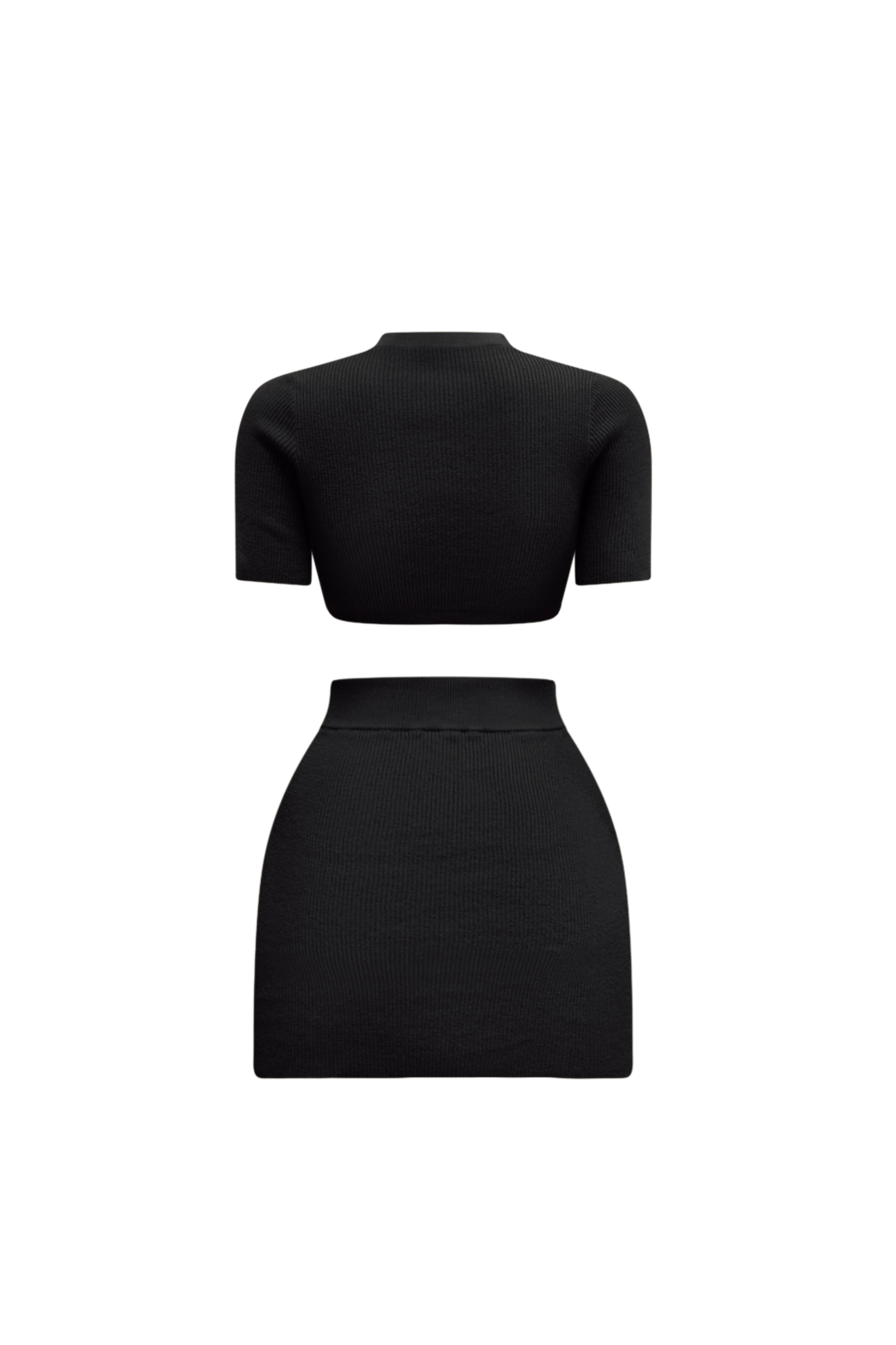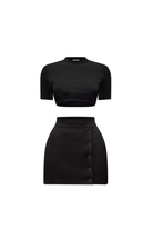 The mini skirt has an easy stretch and can sit high or low on the waist.